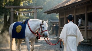 御社殿の近くには、神馬「あかり」ちゃんの厩舎があります。つぶらな瞳のポニーで、参拝後に会いに行くと心が和むという声も多い存在です。神馬は元々、神様の乗り物として奉納されてきた歴史があり、「神様と人をつなぐ存在」として大切にされています。